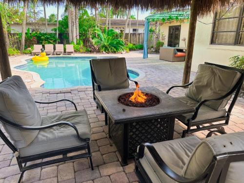 Chic Getaway w Heated Pool & Short Walk to Beach距离好莱坞海滩(Hollywood Beach)约有1.8公里,提供室外泳池和免费WiFi。这家自助式别墅拥有私人泳池、花园和免费私人停车位。