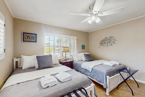 这家度假屋配备4间卧室、3间浴室、床上用品、毛巾、带有线频道的电视、设施齐全的厨房以及湖景庭院。3间浴室配有浴缸或淋浴设施和洗衣机,也提供免费洗浴用品和吹风机。