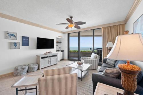 这家度假屋提供阳台,享有海景,拥有2间卧室、起居室、平板电视、带冰箱和洗碗机的设施齐全的厨房以及2间带淋浴设施的浴室。这家空调度假屋还配备休息区、洗衣机以及2间带免费洗浴用品的浴室。