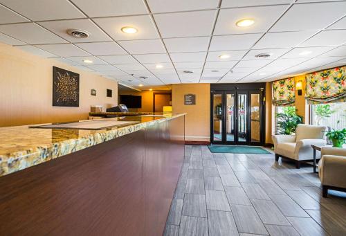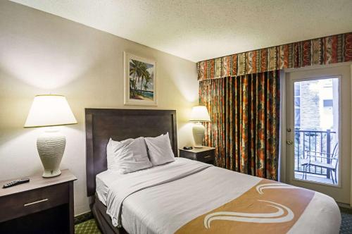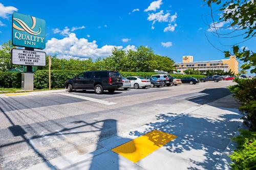 Quality Inn Oceanfront酒店坐落在海滩对面的街道上,提供室内游泳池和季节性室外游泳池,距离海盗旗游乐园(Jolly Roger Amusement Park)3公里。