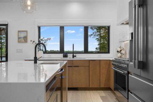 这家度假屋提供庭院,享有湖景,配有4间卧室、起居室、电视、带冰箱和洗碗机的设施齐全的厨房以及3间带浴缸的浴室。3间浴室提供吹风机。