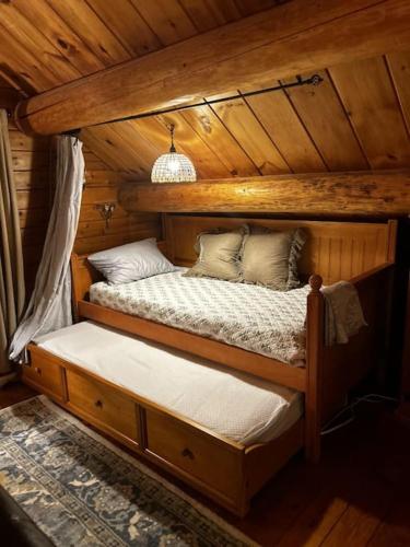 Look to the Mountains: Gunstock Acres Log Cabin坐落于新罕布什尔州的吉尔福特,拥有阳台,享有山景。这家住宿的客人可以使用露台、免费私人停车位和免费WiFi。