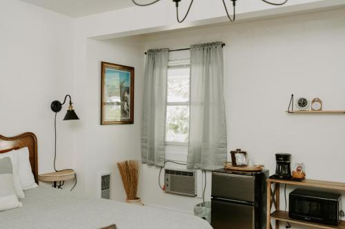Lake George Blue Moon Motel汽车旅馆为客人提供烧烤设施。每间客房都配有咖啡壶和微波炉。