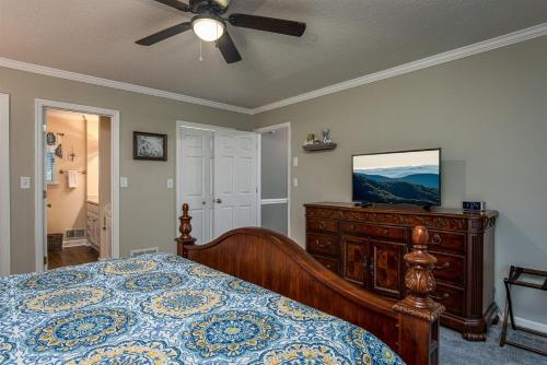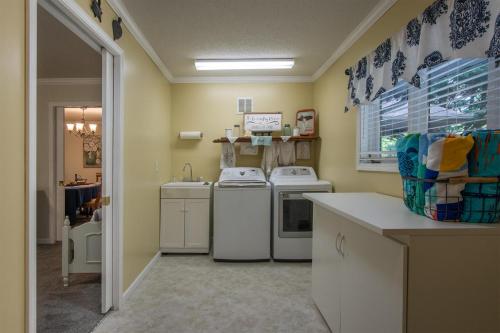 这家度假屋配备4间卧室、带冰箱和洗碗机的厨房以及3间带浴缸或淋浴设施、吹风机和洗衣机的浴室。这家度假屋也为客人提供3间浴室。