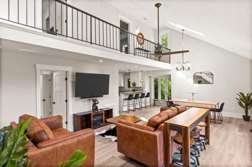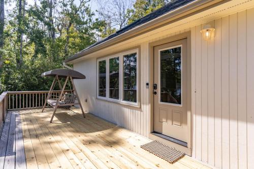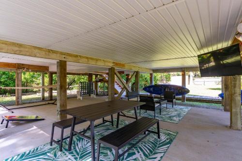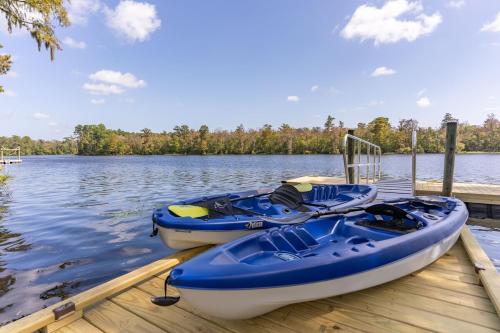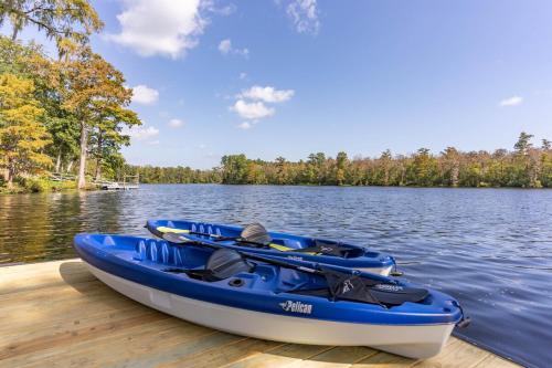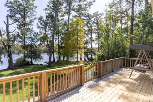 Waterfront Treehouse on the Cape Fear with Dock坐落于北卡罗来纳州的Rocky Point,拥有阳台。这家住宿距离北卡罗来纳号战列舰有26公里,配备花园和免费私人停车位。