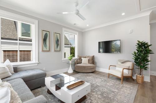 这家空调公寓配有2间卧室、起居室、带冰箱和咖啡机的设施齐全的厨房以及2间带淋浴设施和免费洗浴用品的浴室。这家公寓还配备休息区、洗衣机以及2间带吹风机的浴室。