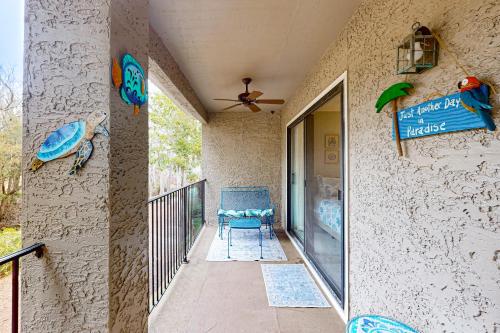The Happy Turtle Villa - Devonshire 205坐落于南卡罗来纳州的希尔顿黑德岛,拥有阳台。这家公寓距离岛民海滩公园(Islanders Beach Park)有8分钟步行路程。