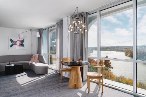客房提供免费WiFi、享有湖泊和城市景观的落地窗以及存储丰富的迷你吧。其他设施包括一间带免费洗浴用品的私人浴室。