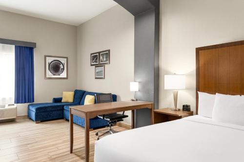 La Quinta Inn & Suites Brownsville North酒店的每间客房都提供带有线频道的平面电视,还配有室内茶水和咖啡设施等便利用品