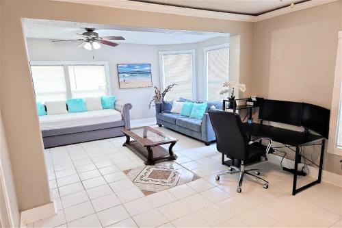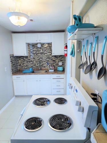 CasaAzul-2605A-Couples Retreat By Pleasure Pier, Beach, Seawall,a block away 5 Minutes from Strands and Cruise Terminal With EV Tesla