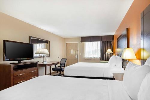 Best Western Inn and Suites New Braunfels汽车旅馆的每间客房都配备了有线电视、办公桌、微波炉、冰箱和咖啡机。