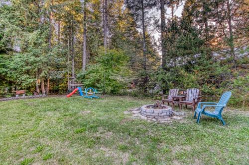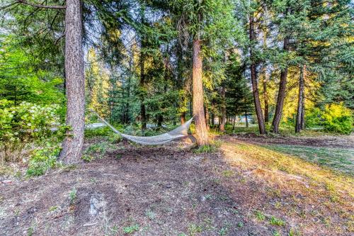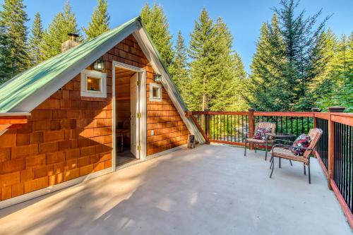 Whispering Pines坐落于华盛顿州的莱文沃思,拥有阳台。入住这家度假屋的客人可以使用庭院。