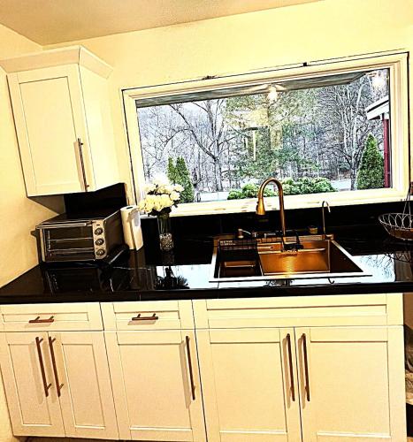 CampRV位于埃尔金斯,提供带免费WiFi的河景客房,配备花园、露台和烧烤设施。这家度假屋配有免费私人停车位。客人可以在周边地区体验徒步、滑雪和垂钓等活动。