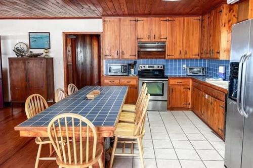 这家度假屋提供庭院,享有海景,配有3间卧室、起居室、电视、带冰箱和洗碗机的设施齐全的厨房以及2间带浴缸的浴室。2间浴室提供免费洗浴用品。