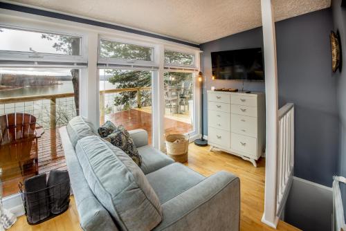 这家度假屋提供阳台,享有湖景,拥有1间卧室、起居室、平板电视、带冰箱和烤箱的设施齐全的厨房以及1间带淋浴设施的浴室。1间浴室配有热水浴池,也配备免费洗浴用品,提供毛巾和床上用品。