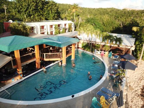 The Oasis, the restaurant at Bolongo Bay, is located poolside and serves breakfast, lunch, and dinner.