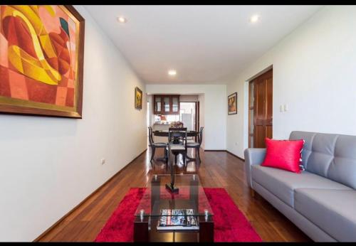 Apartamento en Miraflores坐落于利马的米拉弗罗尔,距离拉柯马购物中心有2分钟步行路程,距离民族博物馆有7.9公里,距离圣马丁广场有10公里。这家住宿距离雷东多海滩(Playa Redondo)有2.6公里,为客人提供免费WiFi,内部提供私人停车位。