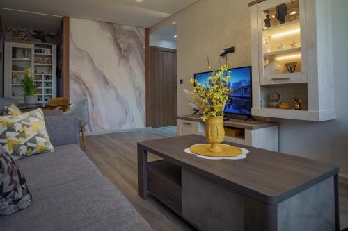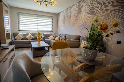 这家公寓享有花园景,配备露台,配有2间卧室、起居室、卫星频道平板电视、设施齐全的厨房以及2间带淋浴设施的浴室。这家公寓也配有休息区和2间浴室。