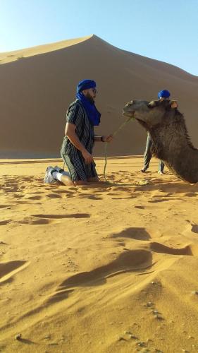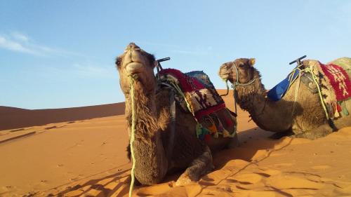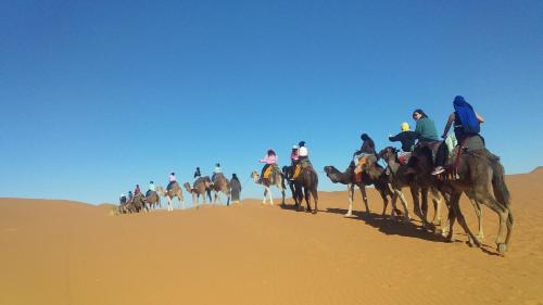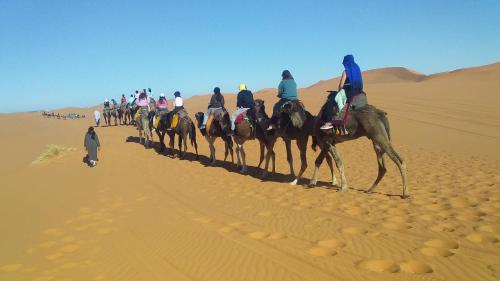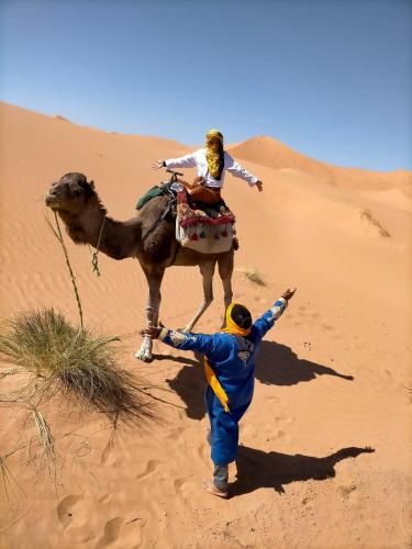 Merzouga camel trek坐落于梅尔祖卡,提供花园、露台和餐厅。这家住宿享有山景和花园景。