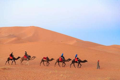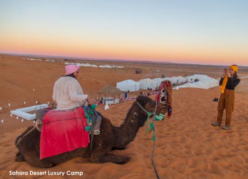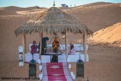 Sahara Desert Luxury Camp豪华帐篷位于梅尔祖卡(Merzouga),靠近骆驼徒步旅行公司(Camel Trekking Company),提供带免费私人停车场的住宿。