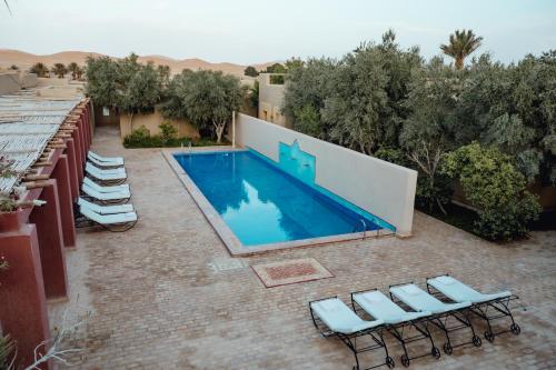 Dar El Janoub位于梅尔祖卡,拥有免费自行车、花园、露台和酒吧。住宿配备24小时前台、机场交通服务、ATM取款机以及免费WiFi。