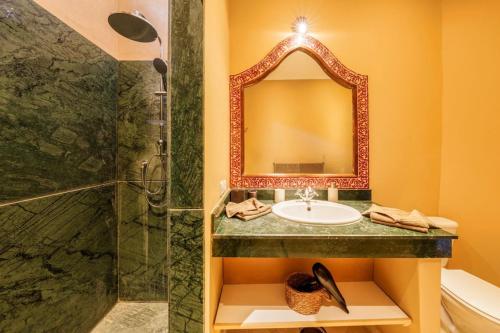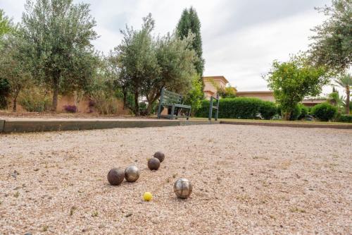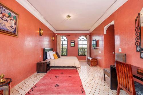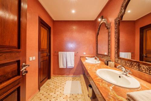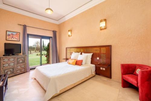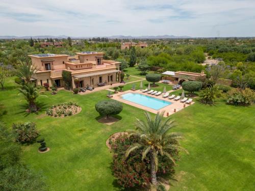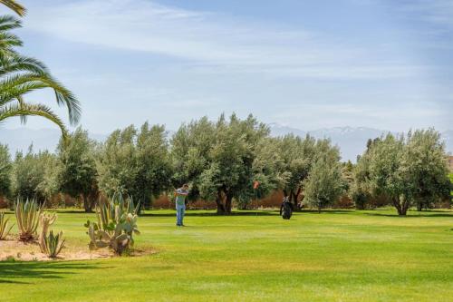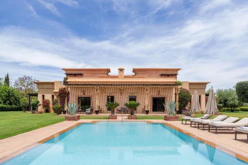 Golf mansion with Atlas mountain view坐落于马拉喀什,距离巴伊亚宫仅有15公里,配备户外游泳池、花园、露台和免费WiFi。这家住宿的客人可以使用乒乓球桌。