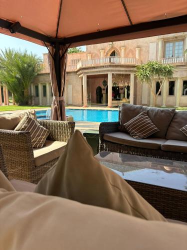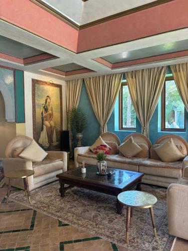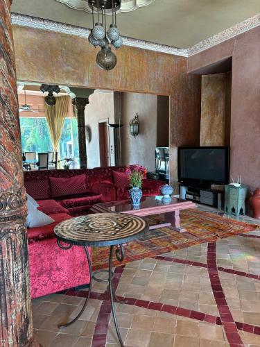 Villa Oussoud位于马拉喀什的帕尔默莱伊,距离马拉喀什东方博物馆仅有4.5公里,配备户外游泳池、花园、共用休息室和露台。这家住宿的客人可以使用阳台、桌球台、免费私人停车位和免费WiFi。