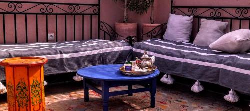 Riad Dar mamouni庭院旅馆位于马拉喀什(Marrakech),配有1间餐厅。