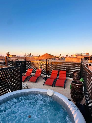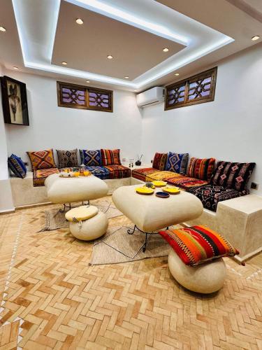 Riad twaam位置便利,位于马拉喀什中心,配有露台。这家度假屋提供免费私人停车位、24小时前台和免费WiFi。