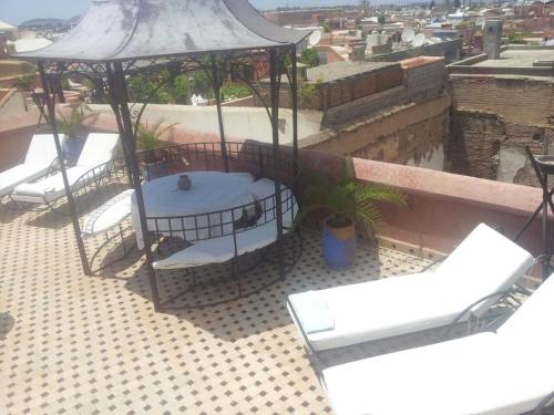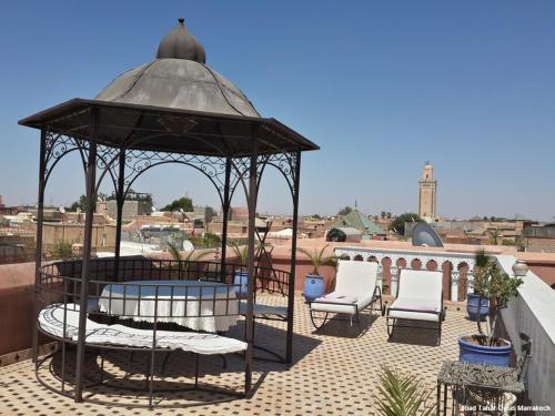 Riad Tahar Oasis酒店位于麦地那地区的中心,提供一个室外游泳池和一个享有马拉喀什和阿特拉斯山脉美景的露台。