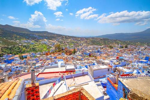 Amazing view and unique design in historic medina位于舍夫沙万,配备带免费WiFi的市景客房,配有露台。这家住宿享有山景,距离坎达科塞莫公园有19分钟步行路程,距离穆罕默德五世广场有不到一公里。