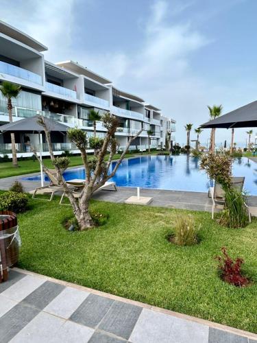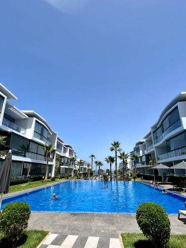 Condo in Casablanca , Beachfront坐落于卡萨布兰卡,距离杰克海滩(Jack Beach)有12分钟步行路程,距离摩洛哥购物中心有15公里,配备免费WiFi和空调。客人可以使用带室外泳池的花园。住宿拥有热水浴池。