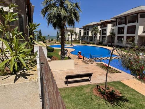 Front Beach - Bahia Golf Beach位于布兹尼盖,距离穆罕默德六世会议中心仅有20公里,提供海滨住宿、户外游泳池、花园、私家海滩和免费WiFi。这家住宿距离穆罕默迪耶皇家高尔夫俱乐部有32公里,配备露台和免费私人停车位。