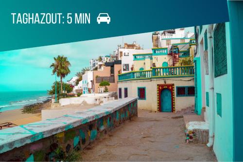 Apt Cosy 5min de la plage #2享有山景,配备阳台和电热水壶,距离達卡扎特海灘(Taghazout Beach)约有8分钟步行路程。这家公寓享有市景和海景,也配有免费WiFi。