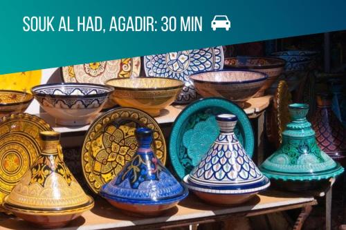 Apt Cosy 5min de la plage #2距离塔吉古特高尔夫球场有2.7公里,距离Agadir port有13公里。住宿距离阿加迪尔–阿尔玛锡拉机场有35公里,提供付费机场接驳服务。