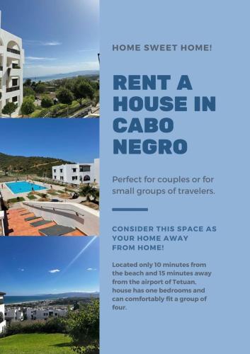 Cozy Appartement à Cabo Negr Bella vista位于卡博尼格洛,距离卡波黑人海滩(Cabo Negro Beach)仅有6分钟步行路程,提供户外游泳池、私家海滩和24小时前台。这家自助式公寓拥有私人泳池、花园和免费私人停车位。