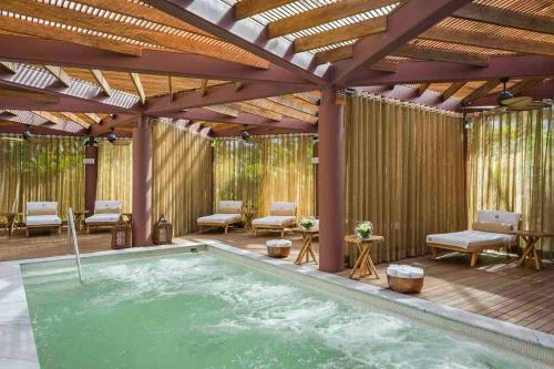 Super Condo 1 en Vidanta享有花园景,配备户外游泳池、健身中心和花园,距离见新巴亚尔塔海滩(Vidanta Nuevo Vallarta Beach)约有1.9公里。这家住宿的客人可以使用露台、乒乓球桌、免费私人停车位和免费WiFi。