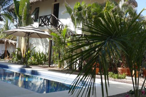 Casa Kuaa位于Brisas de Zicatela,拥有户外游泳池、花园、私家海滩和露台。这家住宿配备酒吧,距离子卡特拉海滩(Zicatela Beach)有不到几步路。这家住宿的部分房间拥有花园景阳台。