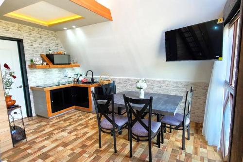 这家1卧室小木屋提供起居室、平板电视、的设施齐全的厨房以及1间带吹风机的浴室。这家小木屋也配有1间浴室。
