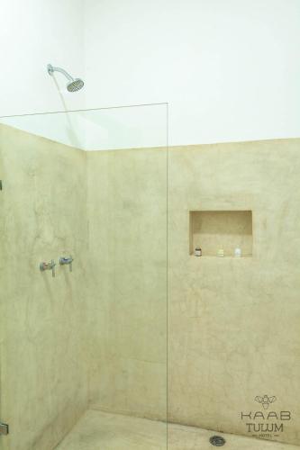 这家酒店的客房提供衣柜。客房拥有配备淋浴设施和免费洗浴用品的私人浴室。部分客房还配备配有微波炉的小厨房。Kaab Tulum的所有客房都拥有书桌和平板电视。