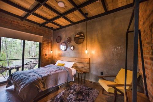 Cabaña El Vértice, Tapalpa坐落于塔帕尔帕,配备带阳台和免费WiFi的自助式住宿。这家自助式度假屋拥有花园和免费私人停车位。