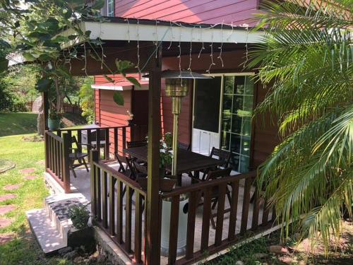 这家小木屋配备3间卧室、2间浴室、床上用品、毛巾、平板电视、设施齐全的厨房以及花园景露台。这家空调小木屋还提供洗衣机以及2间带热水浴池的浴室。