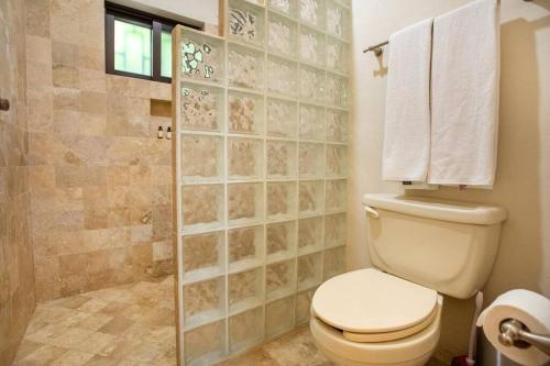 这家别墅提供1间卧室、3间浴室、床上用品、毛巾、平板电视、设施齐全的厨房以及花园景露台。3间浴室提供热水浴池和吹风机。
