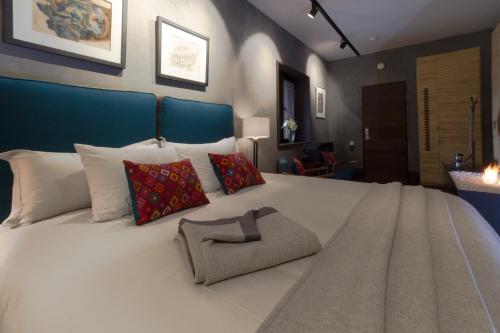 Each luxurious suite at Uvence Arte + Hotel has contemporary architecture with bright finishes and polished cement. All suites have pieces of original artwork.