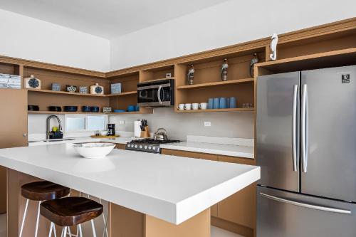 Villa Marina 46 - Playa Arcangel位于罗萨里托的海滨,距离罗萨里托海滩(Rosarito Beach)有7分钟步行路程,距离波波特拉海滩(Playa Popotla)有1.4公里。这家住宿享有海景,配备庭院和游泳池。