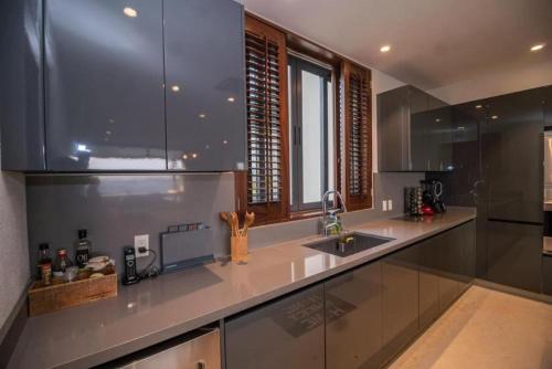 这家空调公寓配有3间卧室以及3间带淋浴设施、热水浴池和免费洗浴用品的浴室。这家公寓配备阳台,也拥有有线频道电视、3间带浴缸和吹风机的浴室以及带冰箱、洗碗机和烤箱的设施齐全的厨房。