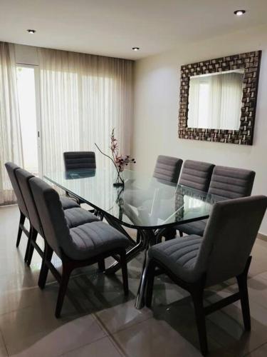 La Residencia ideal vive la experiencia坐落于巴亚尔塔港,配备免费WiFi、空调、户外游泳池和露台,距离奥罗海滩(Playa de Oro)有8分钟步行路程,距离维拉德尔玛海滩(Villa del Mar Beach)有1.6公里。这家自助式度假屋拥有私人泳池、花园和免费私人停车位。