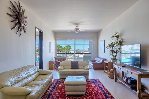 这家公寓提供阳台,享有池景,拥有2间卧室、起居室、电视、带冰箱和洗碗机的设施齐全的小厨房以及2间带浴缸或淋浴设施的浴室。这家公寓还配备休息区、洗衣机以及2间带热水浴池的浴室。