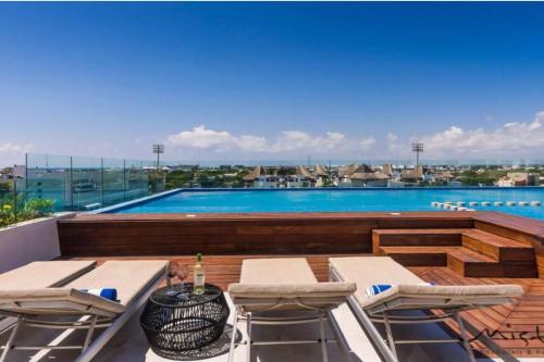 Departamento de Lujo en excelente ubicación位置便利,位于普拉亚卡门,地处中心,享有市景,提供户外游泳池和露台。这家住宿提供私人泳池、免费WiFi和免费私人停车位。