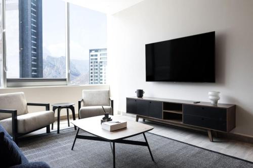 Modern Apartments with Pool and Mountain views坐落于蒙特雷,配备免费WiFi,配有游泳池、健身中心和露台,享有海景。